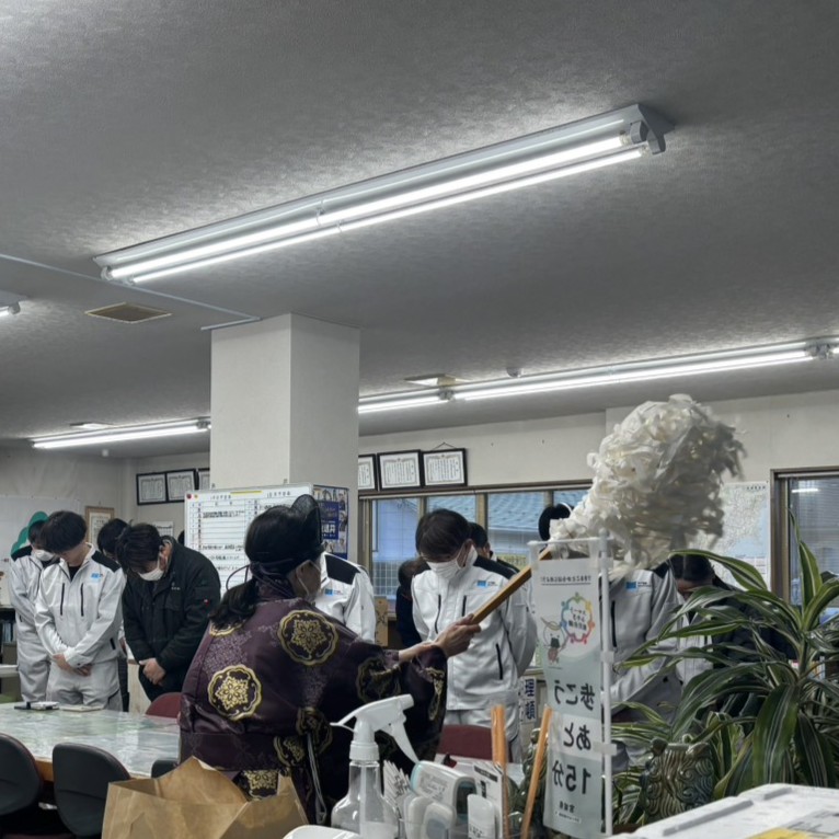 2026.01.08 令和8年 安全祈願祭を行いました 年明けに安全祈願祭を行いました。本年も現場に関わる全ての方の安全を第一に、無事故・無災害を目標として、日々の施工・業務に取り組んでまいります。本年もどうぞよろしくお願いいたします。